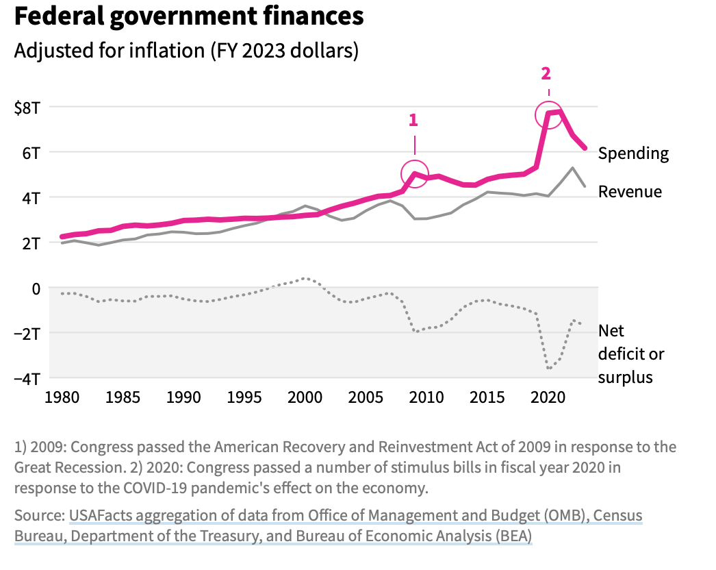 [TS] Both parties don’t seem to want to reckon with the ballooning debt. There are only two ways to reduce the deficit (and subsequent debt)