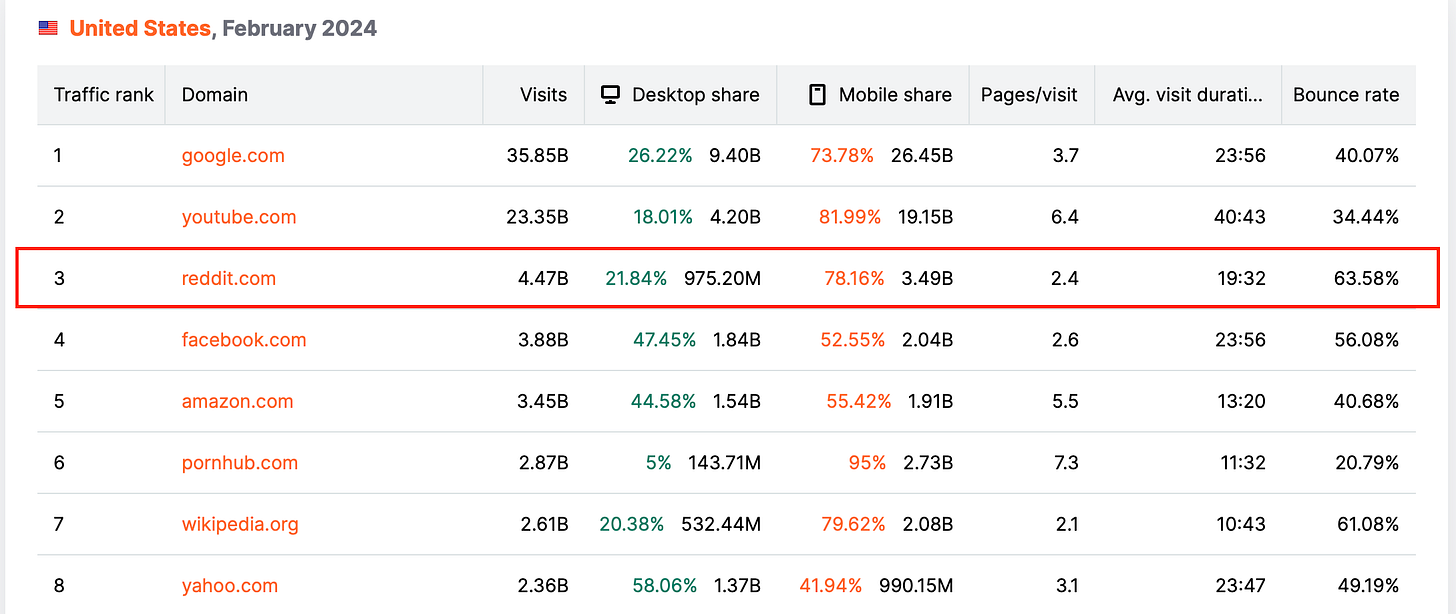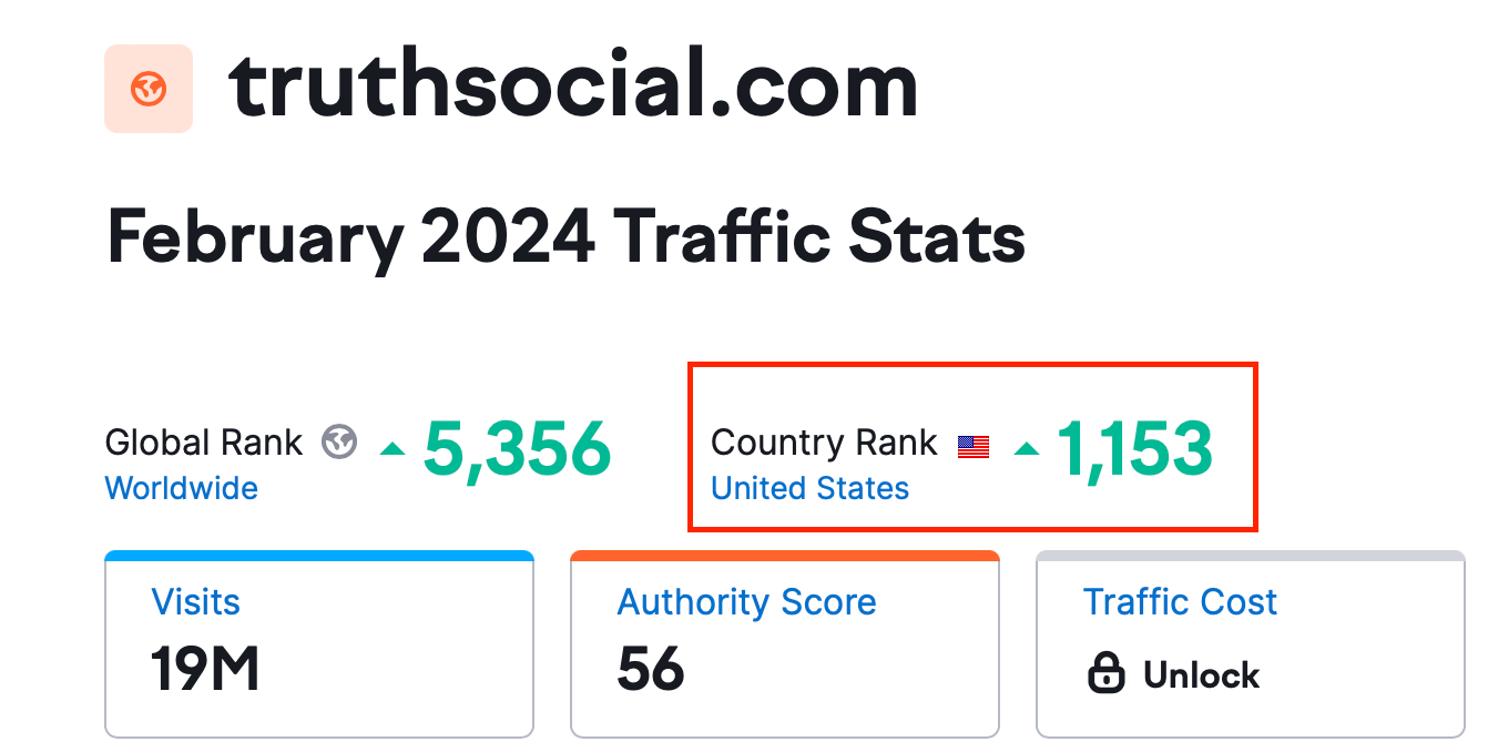 They just went public ($RDDT) on Thu (Mar 21st) with a valuation around ~$7B ($7.31B on Fri). Truth Social on the same ranking site gets 19M views and is ranked 1,153: