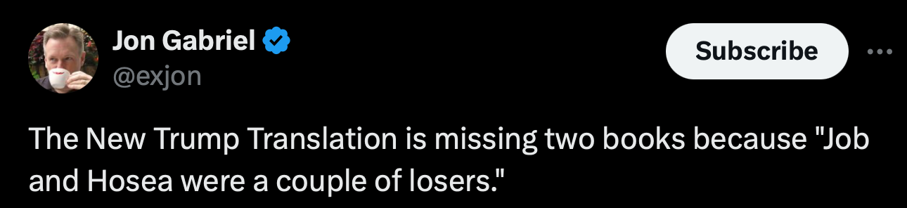[TS] There is nothing this man won’t sell. King James too? Thank goodness. I figured Trump was a strict King James kind of guy.