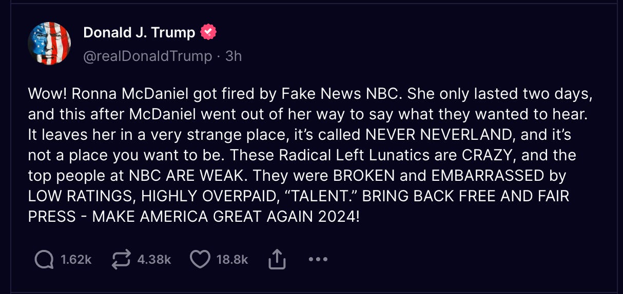 3.) [UPDATE] on Ronna McDaniel: She’s OUT at NBC.