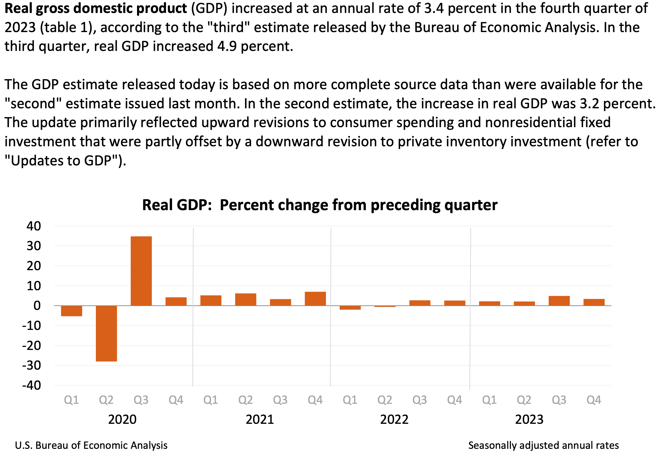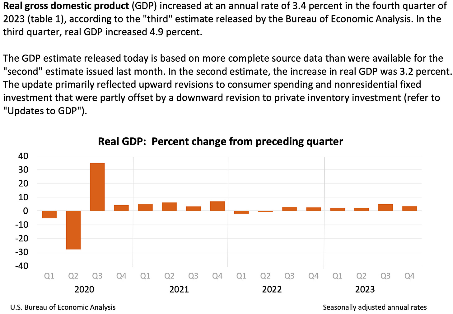 4.) BEA: The U.S. economy grew at a 3.4% annualized rate in Q4, up from the 3.2% rate estimated a month ago.
