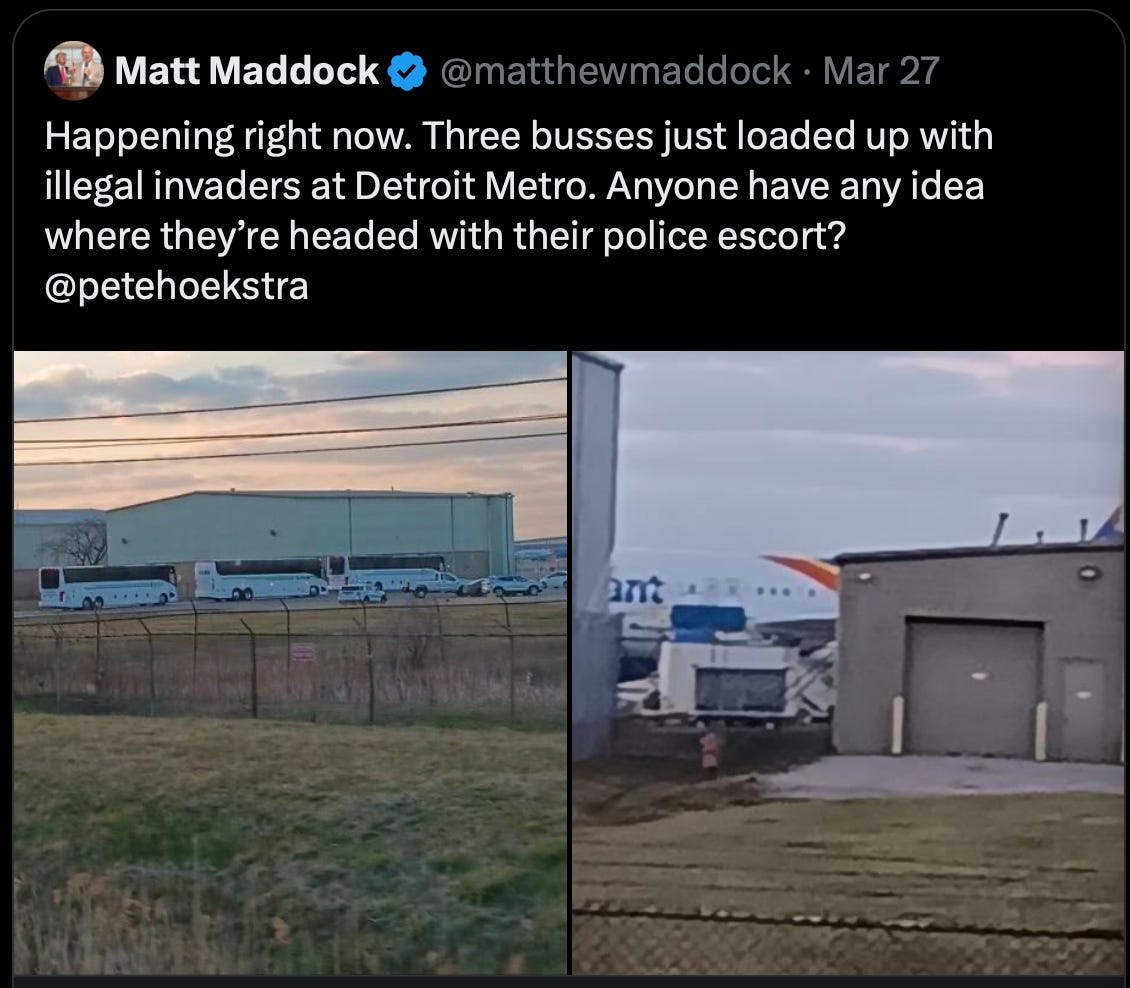 7.) Matt Maddock, a Michigan state representative, mistook (3) buses full of Gonzaga University students coming to Detroit for the Sweet Sixteen men’s NCAA basketball tournament as “illegal invaders at Detroit Metro.” [TS] The tweet is still up 17hours later…