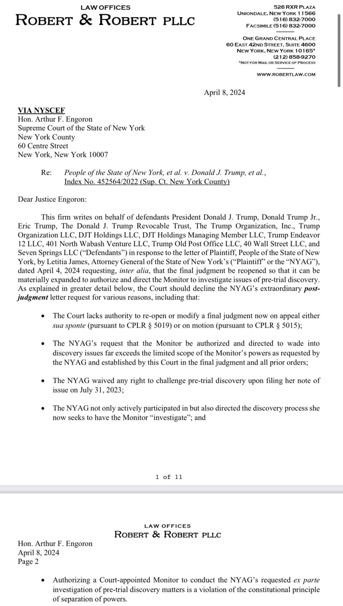 He claims it’s “unconstitutional,” among other things. The AG wants the monitor to investigate why certain emails were left out during Trump’s fraud trial.