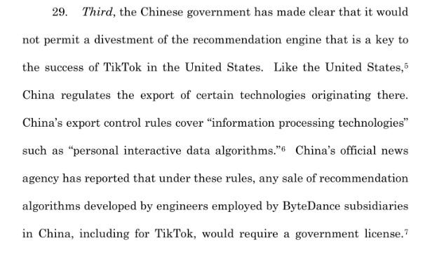 [TS] One of the reasons TikTok argues in federal court they can’t divest from china is… because the Chinese government won’t allow it:
