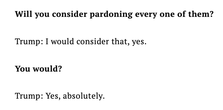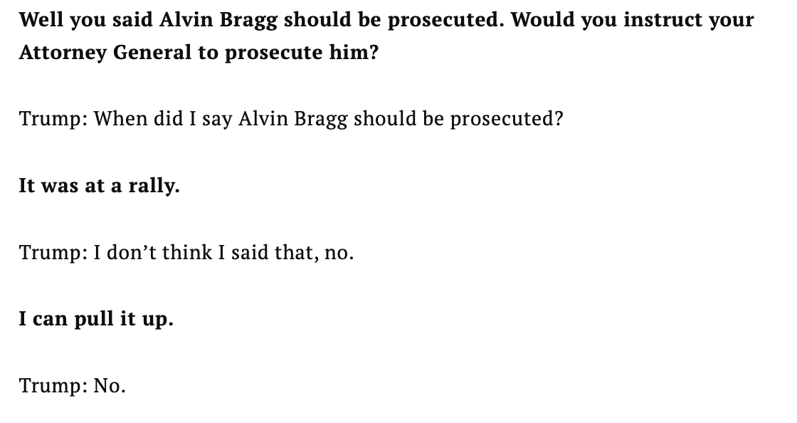TIME interview with Trump covers various topics, including prosecuting Alvin Bragg, abortion, tariffs, NATO, Jan. 6th rioters, and the possibility of political violence.