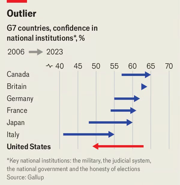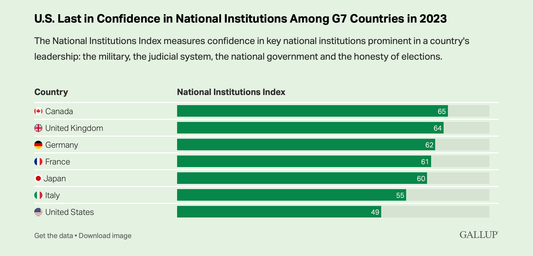 11.) GALLUP: US an outlier among G7 countries with low confidence in national institutions