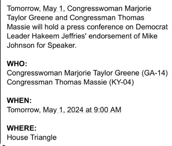 [UPDATE] MTG and Massie are doing a presser this morning: