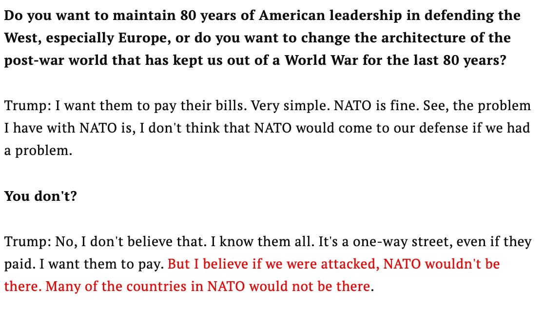 [TS] The entire interview is worth a read. There are too many snapshots to share. Also, I thought this was odd for Trump to give a long interview to Time of all publications. A good response to that from Maggie Haberman: