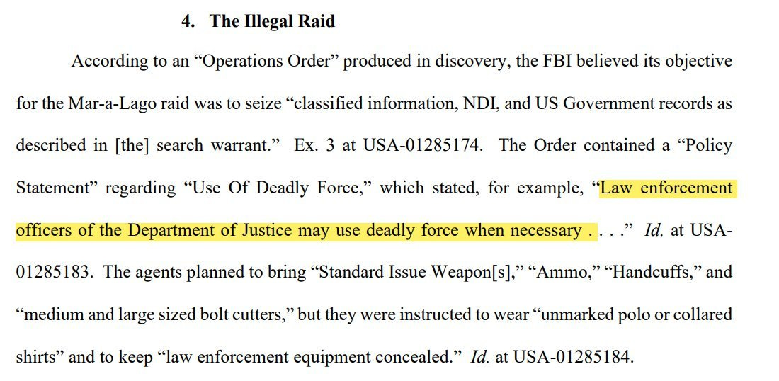 What Trump is claiming is a distortion of what was revealed in docs, which shows it's a reflection of the standard FBI policy when conducting such a search. No indication this is a departure from that standard posture anytime the FBI is conducting law enforcement activity.