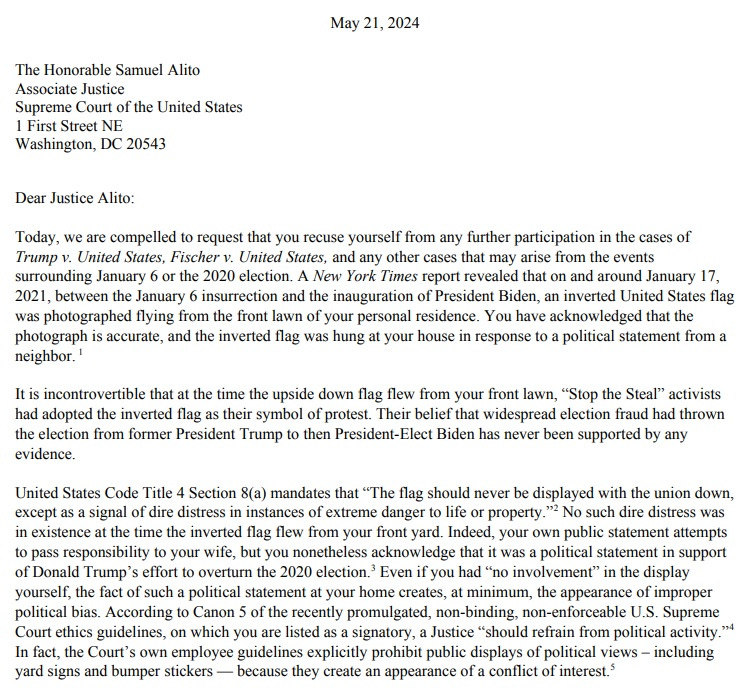 5.) Group of House Democrats ask Supreme Court Justice Sam Alito to recuse himself from Jan 6 related cases.