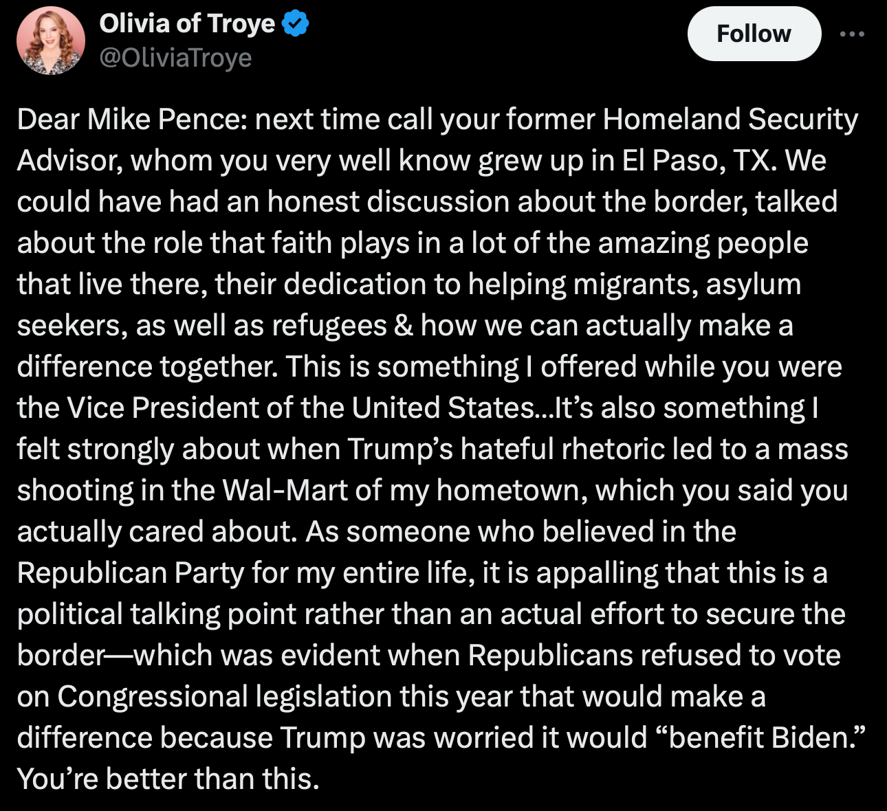 Troye Criticizes Pence: Olivia Troye spoke out against Mike Pence’s criticism of Joe Biden's handling of the border crisis during his visit to the border.