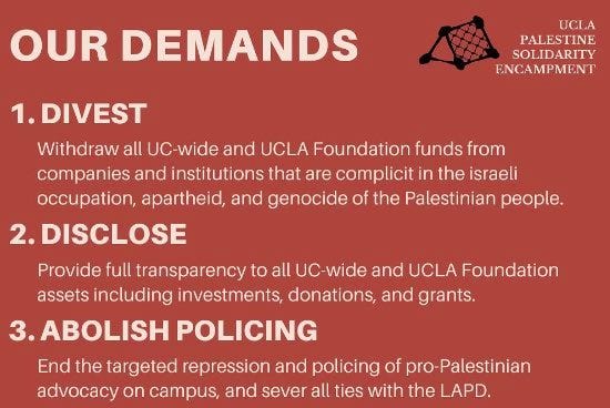 [UPDATE / UCLA] Fox’s Bill Melugin: The anti-Israel protesters at UCLA just held a press conference where they said they were victims of a “life threatening assault” at the hands of “Zionists” Tue night. They complained that police didn’t do enough to intervene, however, their demands include “abolish policing”.