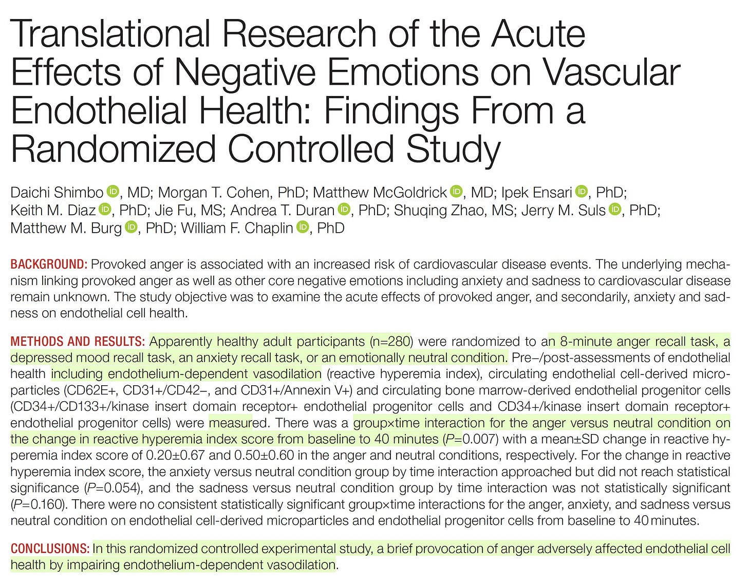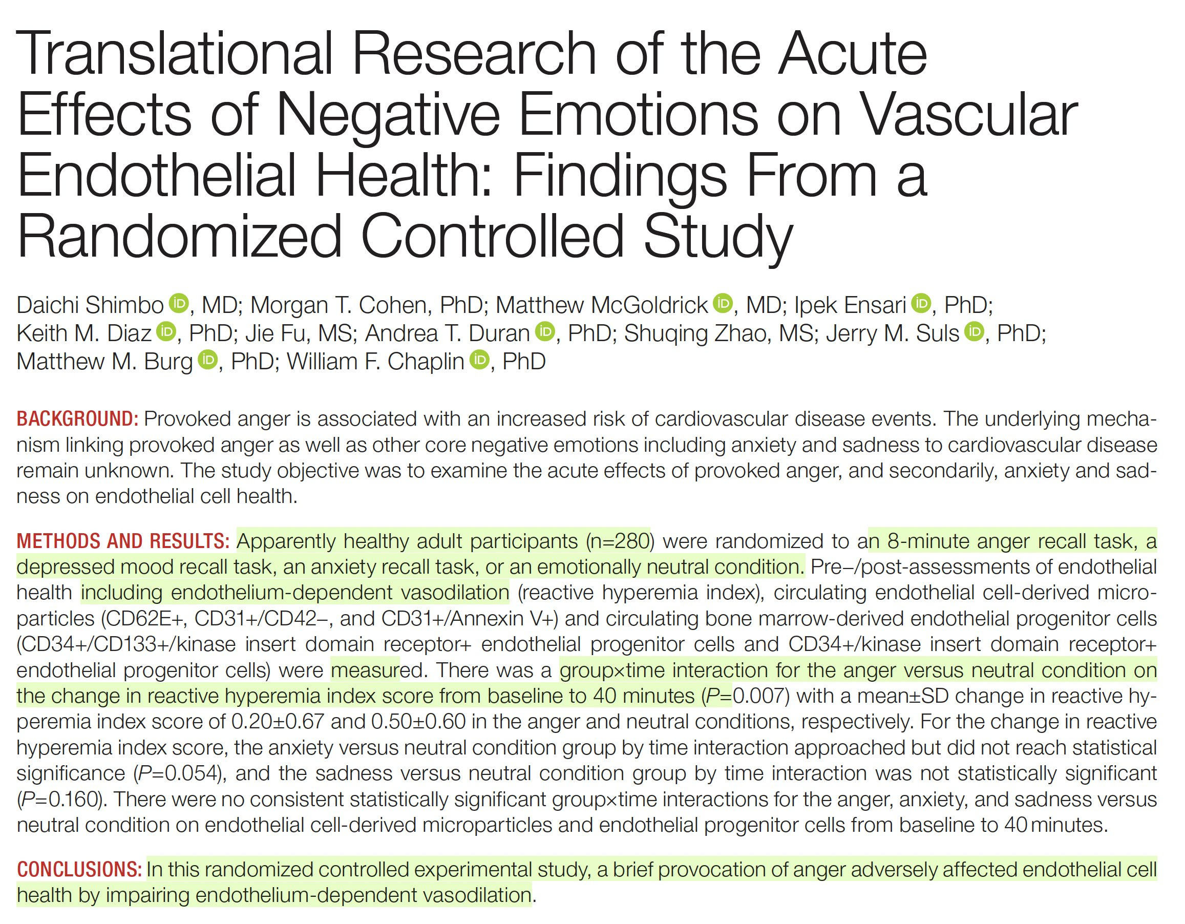 8.) JAHA: Even brief anger is bad for your blood vessels (and cardiovascular health) - results from a randomized trial.