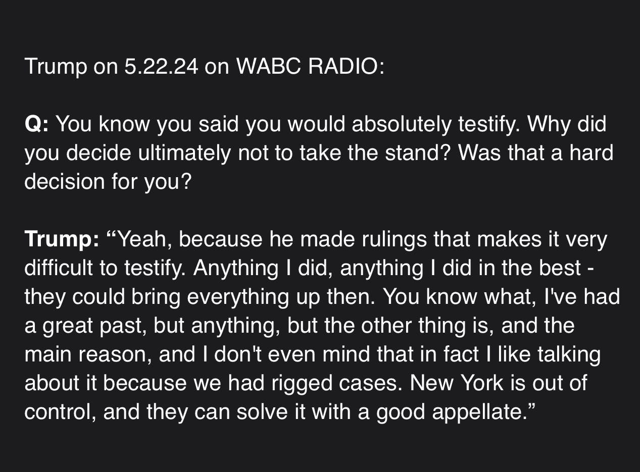 16.) Trump on WABC Radio on why he didn’t testify: