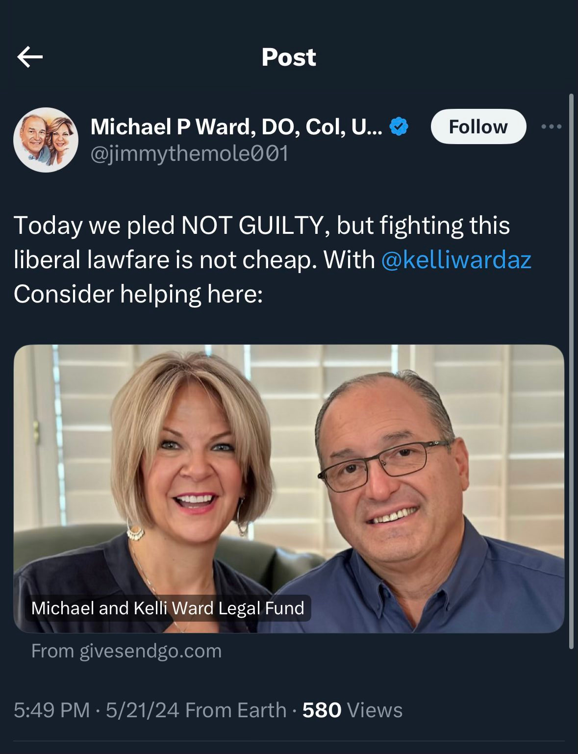 Kelli Ward, the former chair of the Arizona Republican Party, and her husband, Michael Ward, have been indicted as part of a group of 18 people charged in connection with a scheme to present themselves as Arizona's legitimate presidential electors in the 2020 election. They face charges of conspiracy, fraud, and forgery for their role in attempting to falsely certify that Donald Trump won Arizona's electoral votes, despite Joe Biden's victory in the state. The indictment is part of a broader investigation into the efforts to overturn the 2020 election results in several states