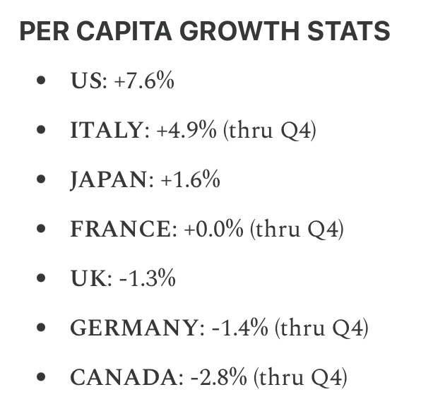 [TS] Might be worth unpacking some of this. “56% of Americans say the US is in a recession.” Ok, obviously GDP has not been shrinking (I’ve covered how well the US is doing vs our allies HERE #8) for reference: