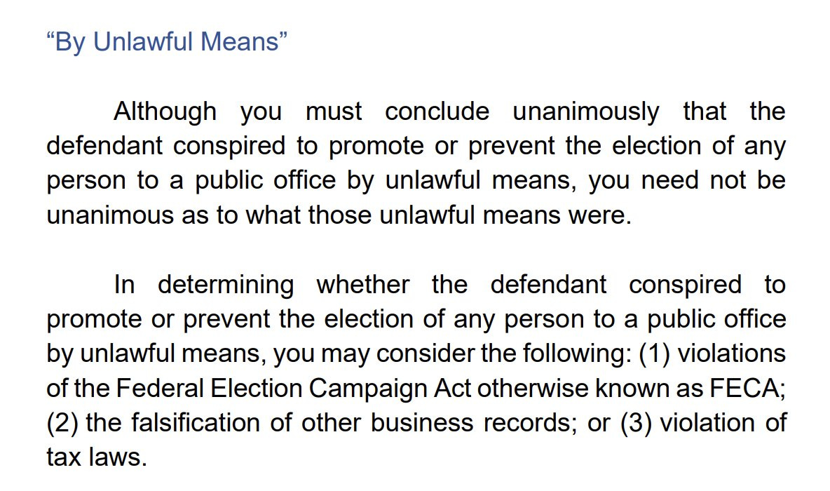 The jury must vote unanimously to convict. The jurors don’t have to agree on which specific crimes Trump wanted to conceal.