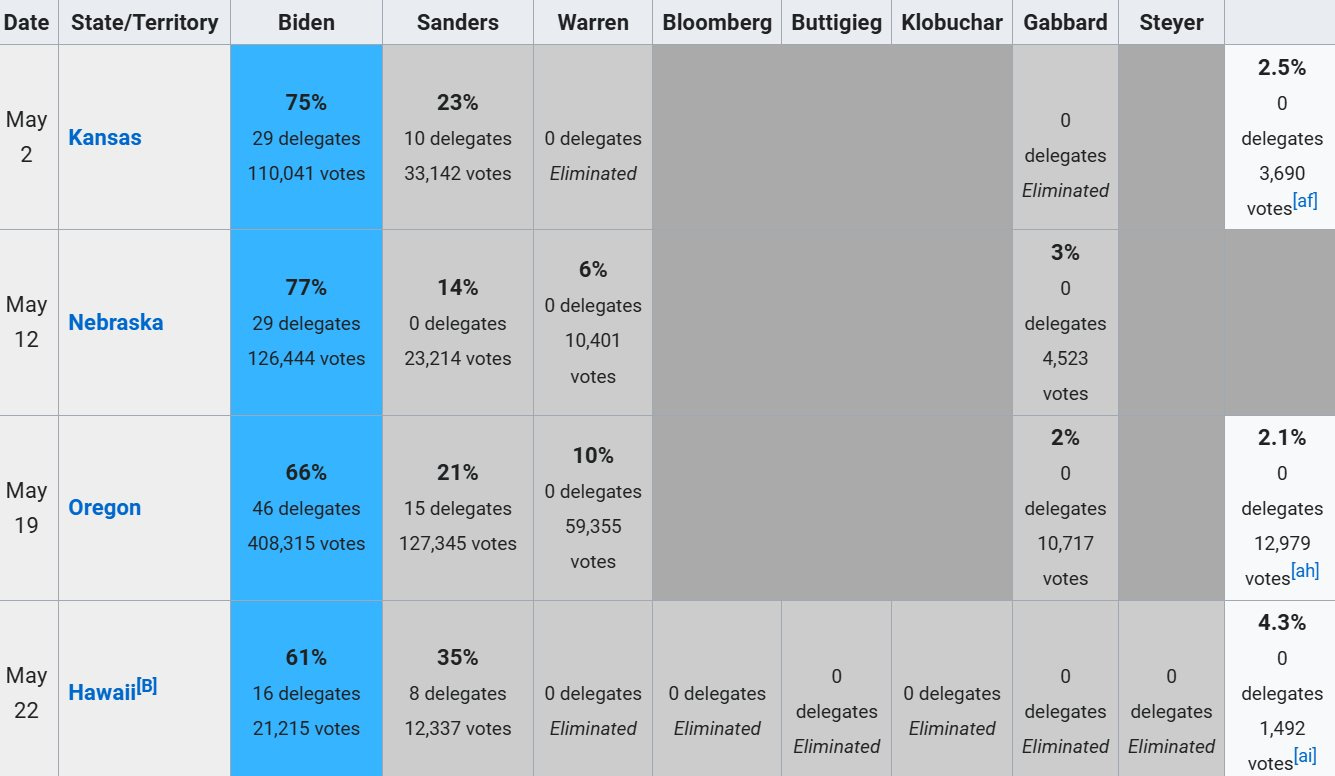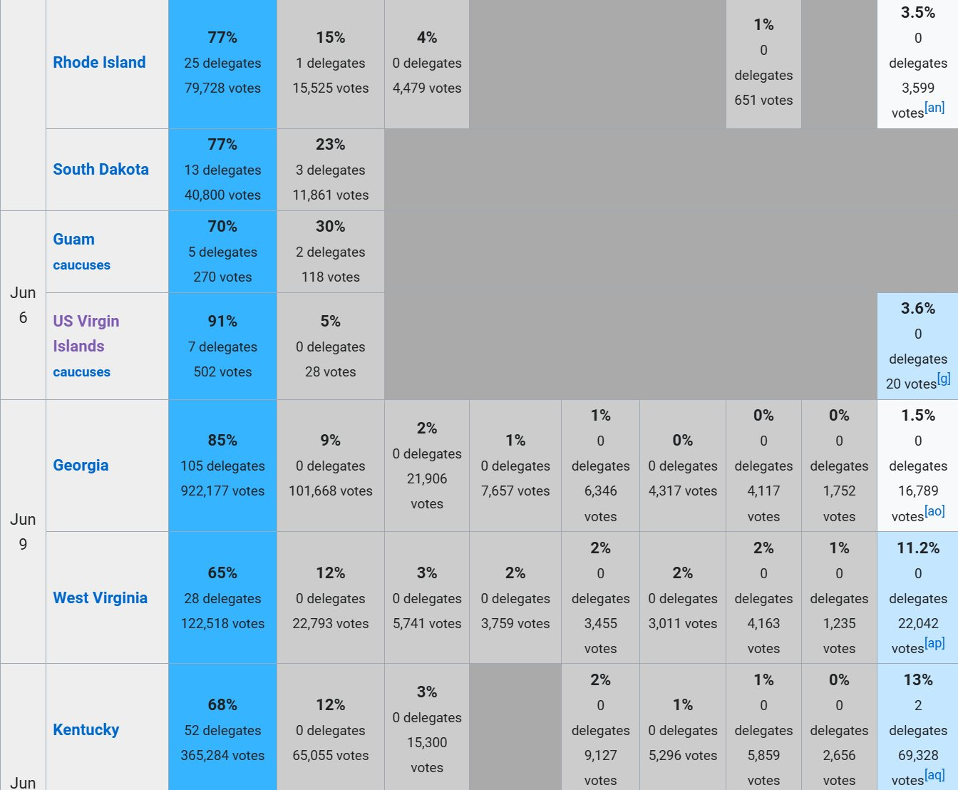 Granted, I did say take it with a mound of salt. But, if we look at the last Presidential primary in 2020 with Biden, Bernie et al. Biden consistently won primaries with only 80%. Bernie was getting 20% or close to 20% in multiple states after he dropped out: