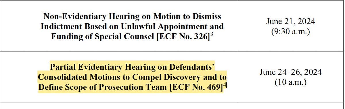 Most stunning is this 3-day hearing on whether to widen discovery by redefining "prosecution team" to include people in White House, NARA, intelligence community etc: