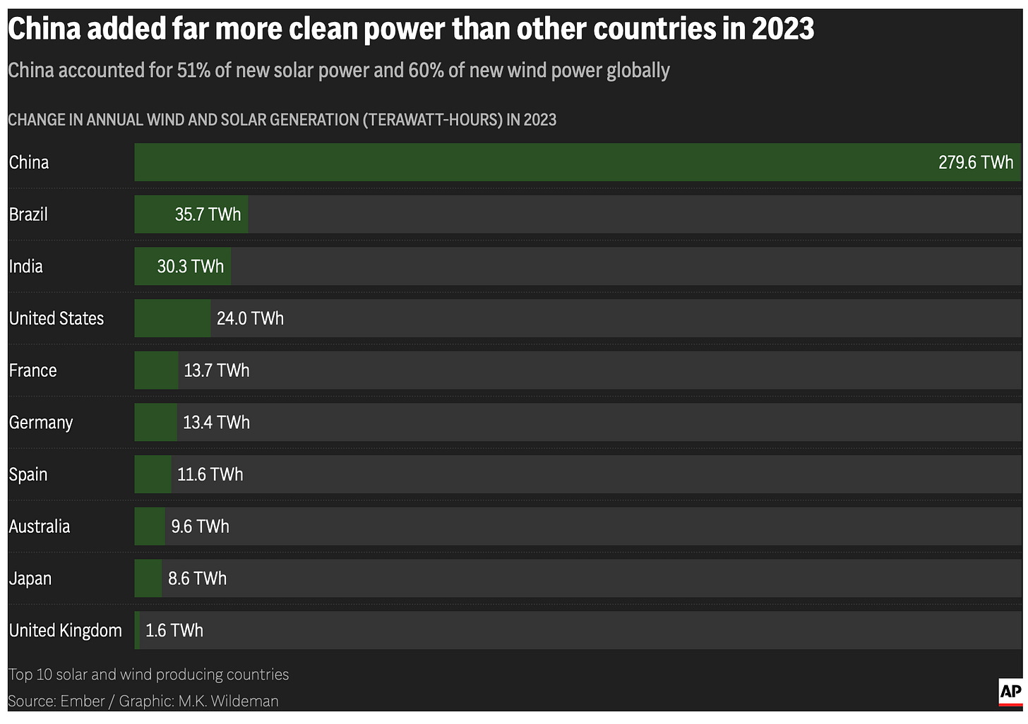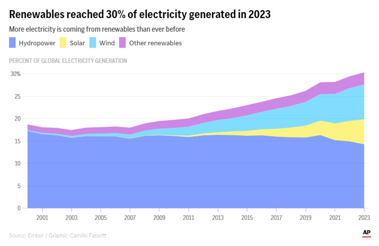 13.) AP: Electricity from clean sources reaches 30% of global total