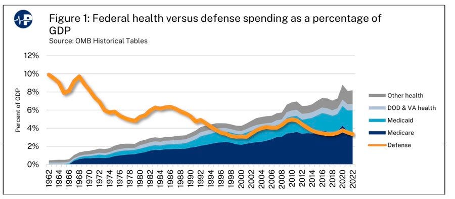 We spend more on the military than on healthcare: FALSE: The Fed goverment alone spends more than twice as much on healthcare than on defense.