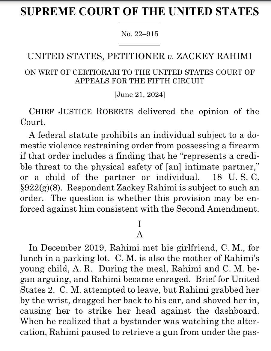 1.) SCOTUS rules in US v. Rahimi that the govt. can take guns away from domestic abusers (8-1).
