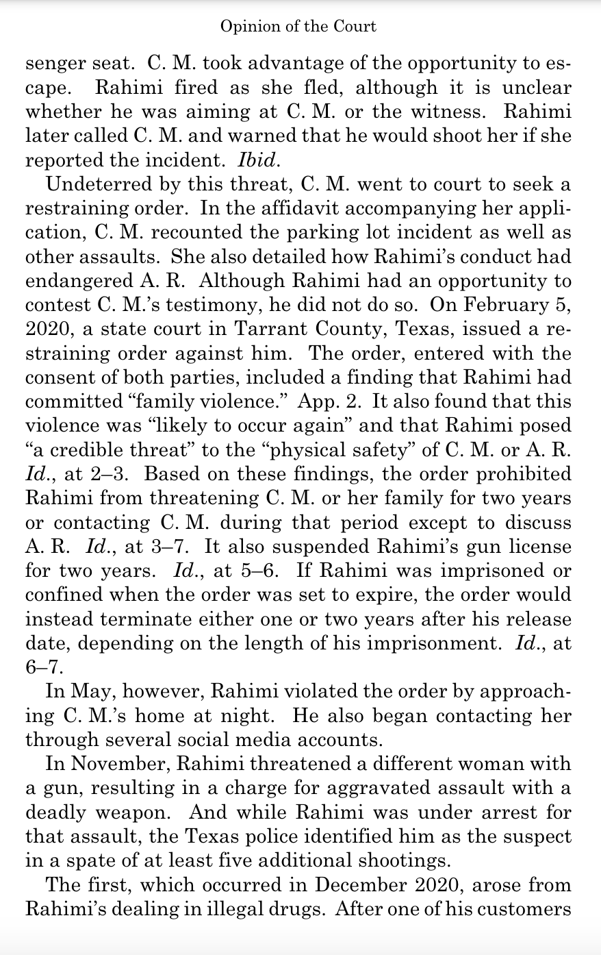 [TS] The lone dissenter was Justice Thomas, no surprises here. I do want to point out a few details from the case — Clarence Thomas thinks this person should be allowed to have a gun: