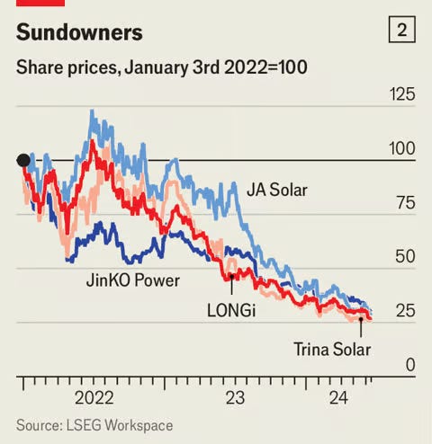 Share price of many Chinese solar companies have lost ~75% of their value since 2022