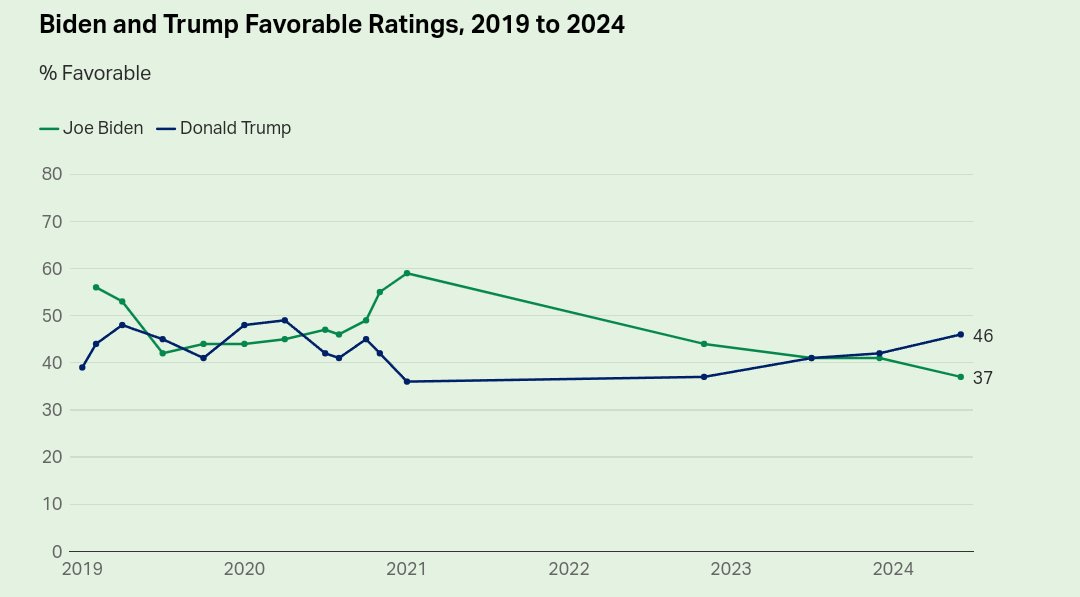 Election Models: Multiple quantitative models heavily favor Trump for 2024, with probabilities ranging from 49% to 71%. Biden's favorability reaches new low.