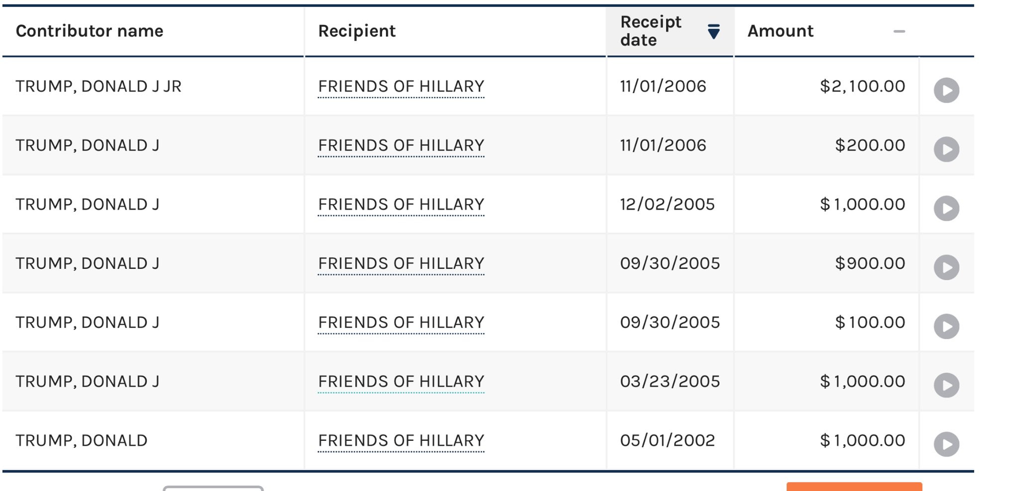 Trump also becomes the only person to ever run against a Presidential candidate they previously donated to--and he does it twice over!