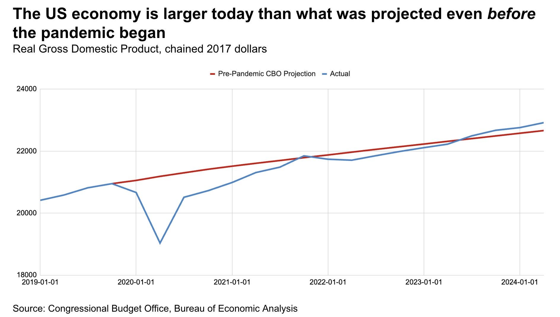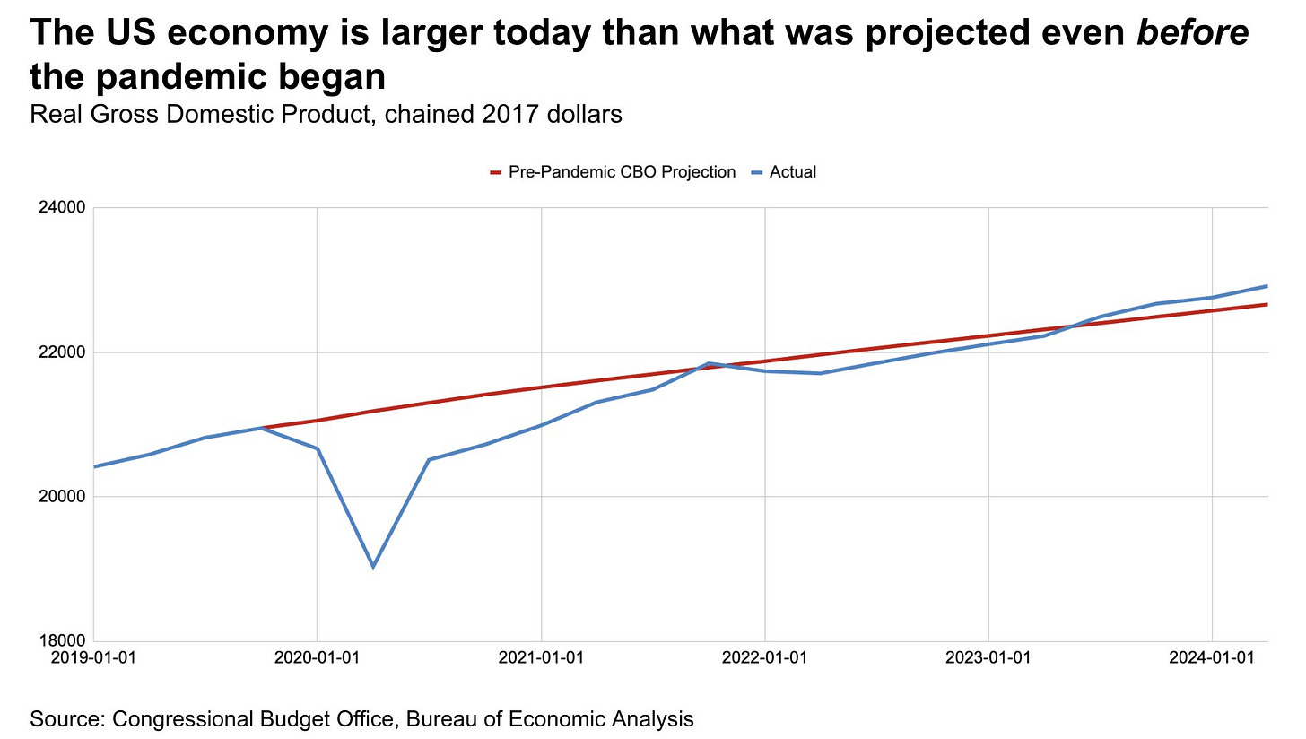 US Economic Resilience: Current economy surpasses pre-pandemic projections.