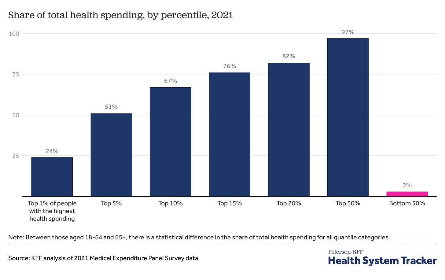 US Healthcare Spending Disparity: 1% of population accounts for 24% of health spending.