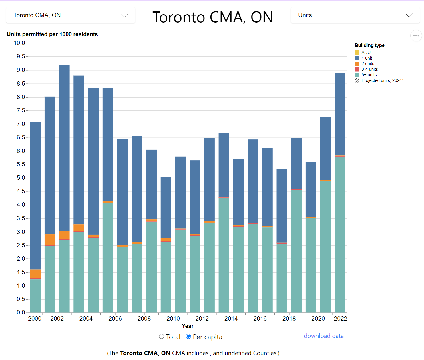 Toronto builds at the pace of like Houston except it's all giant towers instead of suburban subdivisions