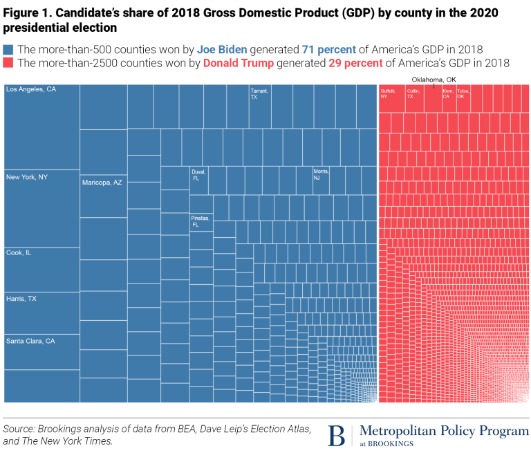 GDP by Political Affiliation: Economic contribution compared at county level for 2018 and 2020.