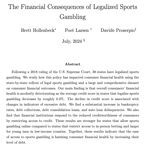 10.) Working Paper: The Financial Consequences of Legalized Sports Gambling
